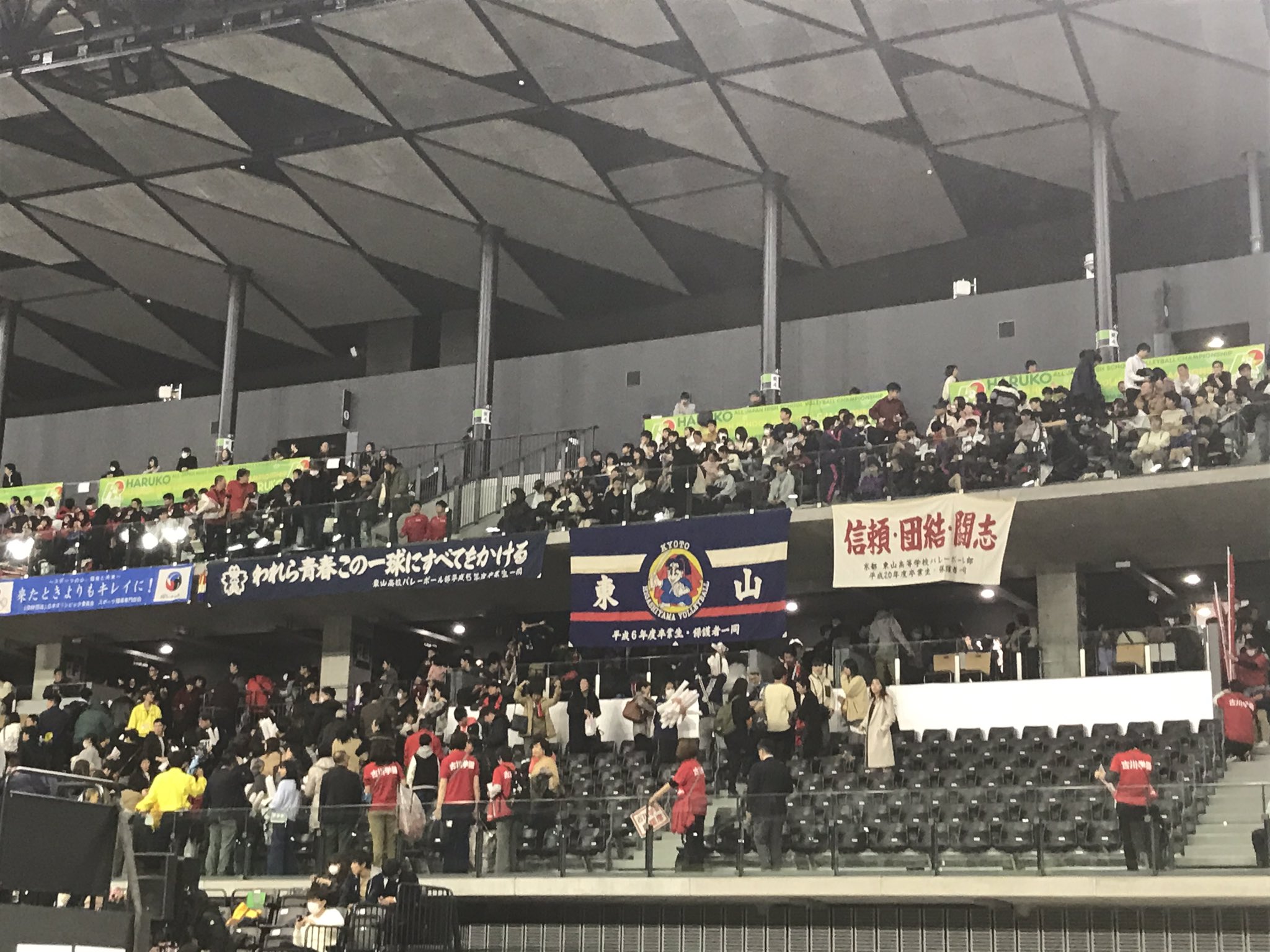 柄谷雅紀 東山の横断幕には 信頼 団結 闘志 とありました 同じ言葉が ジャージにもtシャツの左胸にも入っていました 豊田監督は日体大出身 日体大バレー部の部室の入り口にも書かれている言葉です 春高バレー バレーボール 東山 日体大